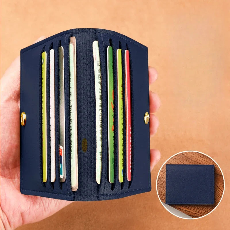 Fabricado en cuero PU de alta calidad, este portatarjetas combina resistencia y sofisticación, garantizando durabilidad sin perder el encanto. Su diseño fino y moderno es perfecto para quienes valoran la organización y la discreción, cabiendo fácilmente en el bolsillo del pantalón o en el compartimento del bolso.